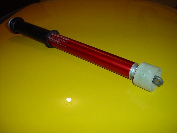 Slipstick V (Trident would be a good name for this, but its a bit over used, so maybe Twin-Trident?) in its present form consist of three 54mm in-line airframes, made from Performance Rocketry Little Dog Dual Deploy Kits (and extra parts). It is designed for three minimum diameter K motors (K700's or K660's), but it has 38mm options as well. The sustainer's motor extends out the bottom of the sustainer and is used as the coupler into the cradle. The motors are retained in the airframe at the forward closure end. Avionics are mounted in the nose cones of the Cradle pods (deployment) and in the center cradle airframe (sustainer ignition timer). The sustainer has a conventional avabay in the mid section for dual deployment and a DC20 (GPS) in the nose cone. Estimated altitude goal is to bust 30K.